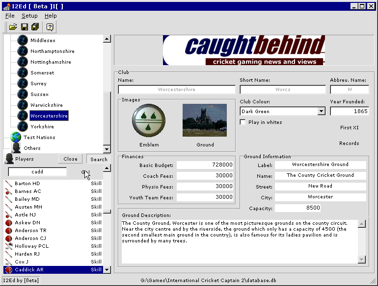 Updated Downloads page - added County Championship 2000 database created using I2Ed by Alex Grimsley.